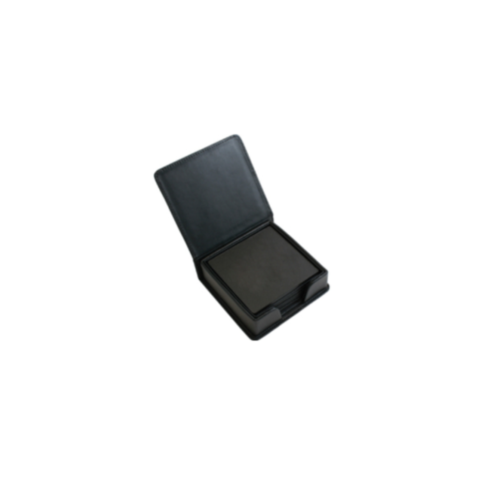 Set de porta vasos coaster con costuras negras. Caja de cuerina, incluye 6 coasters.