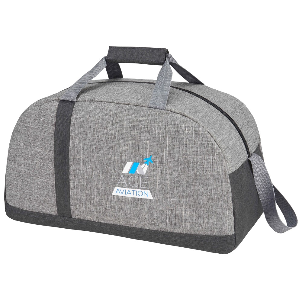 La bolsa deportiva reciclada bicolor Reclaim está fabricada con material RPET ecológico. Cuenta con un bolsillo frontal vertical con cremallera y un amplio compartimento principal con cremallera.